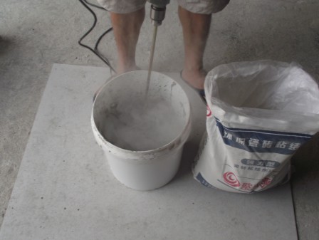 2. 按比例加入瓷磚粘結劑