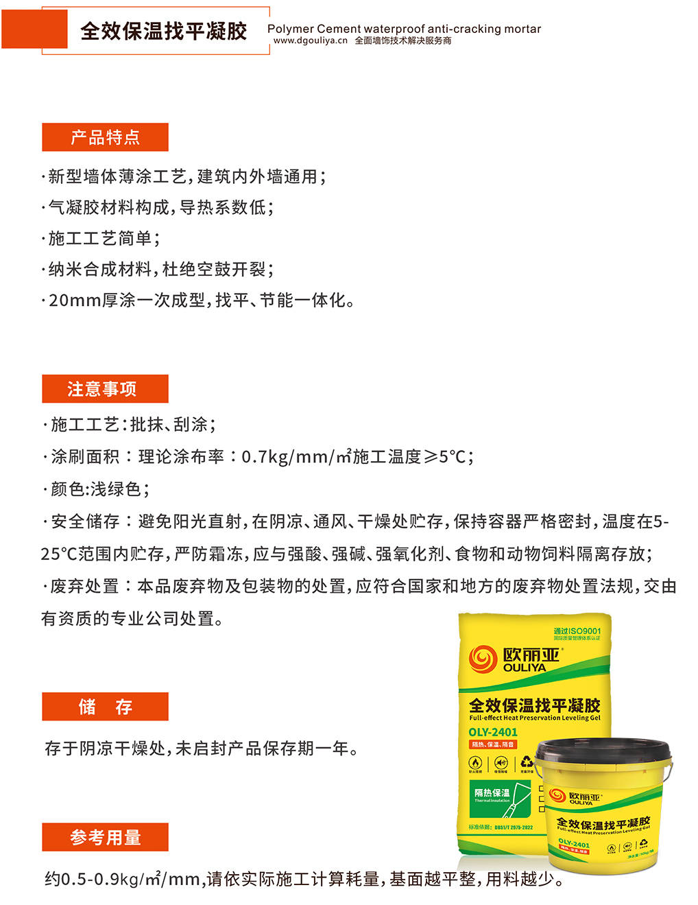 東莞市歐麗亞環保材料有限公司專注于“環保,創新”型建筑裝飾材料,瓷磚膠,硅藻泥,石材防水背膠,抗裂砂漿,裝飾砂漿,防水系列,自流平水泥,防霉膩子,二合一填縫劑的研發、生產、營銷、技術咨詢于一體的墻飾高新技術企業。